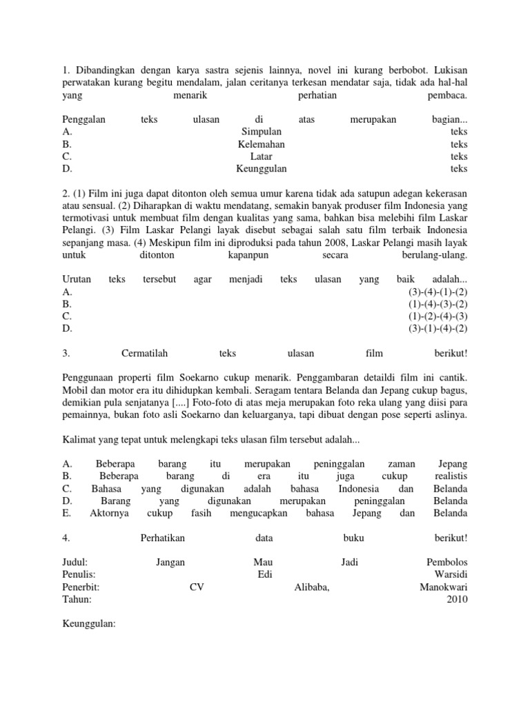 Soal Ulasan Film