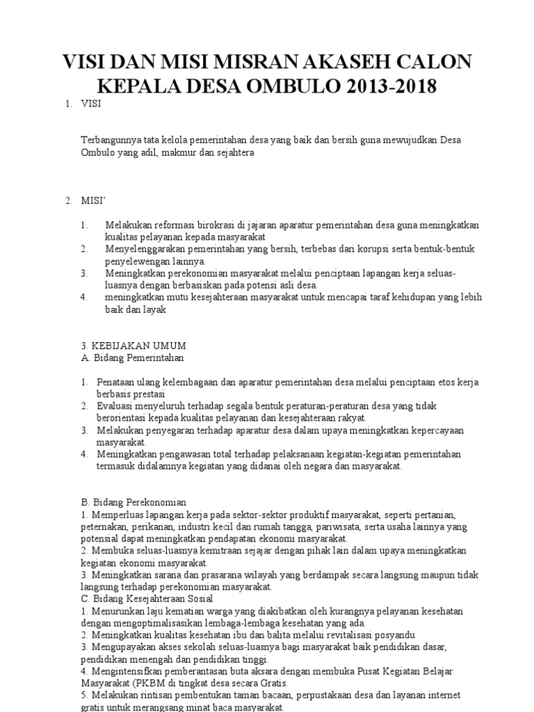 DOC) VISI – MISI CALON KEPALA DESA | Arifin SAja - Academia.edu