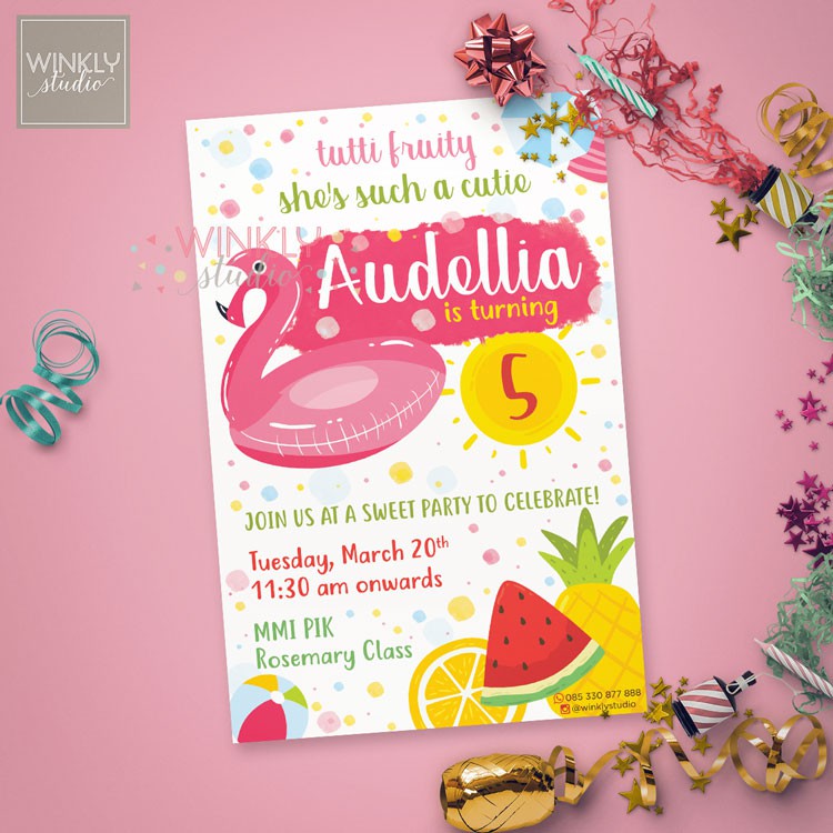 Summer Flamingo Undangan Ultah Anak Girl Birthday Party Invitation Custom | Shopee Indonesia