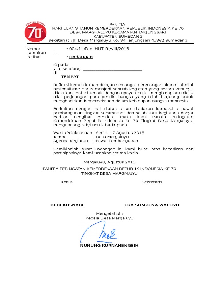 Contoh Undangan Rapat Hut Ri Ke 73 - Nusagates