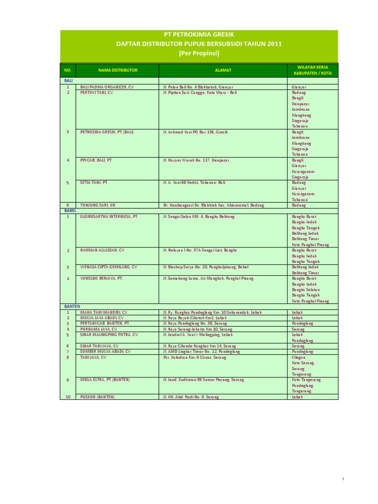 PDF) DAFTAR DISTRIBUTOR PUPUK BERSUBSIDI PT PETROKIMIA GRESIK TAHUN 2016 (Per Provinsi | Rades Rohul - Academia.edu