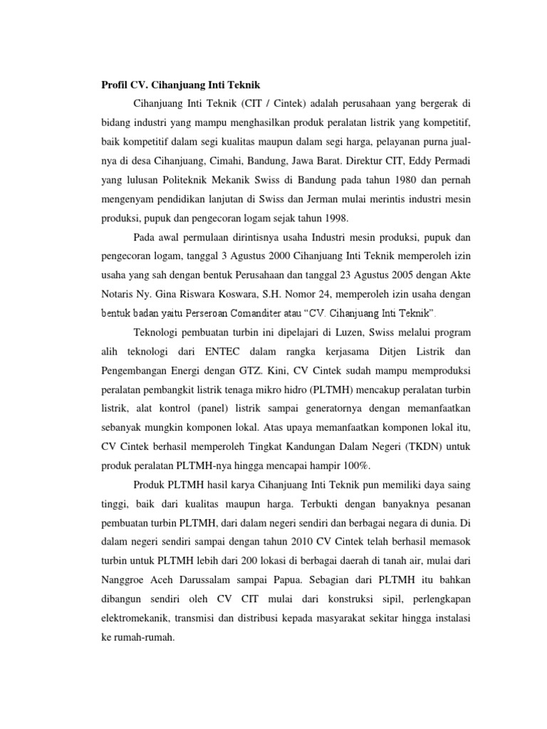 Profil CV Cihanjuang Inti Teknik