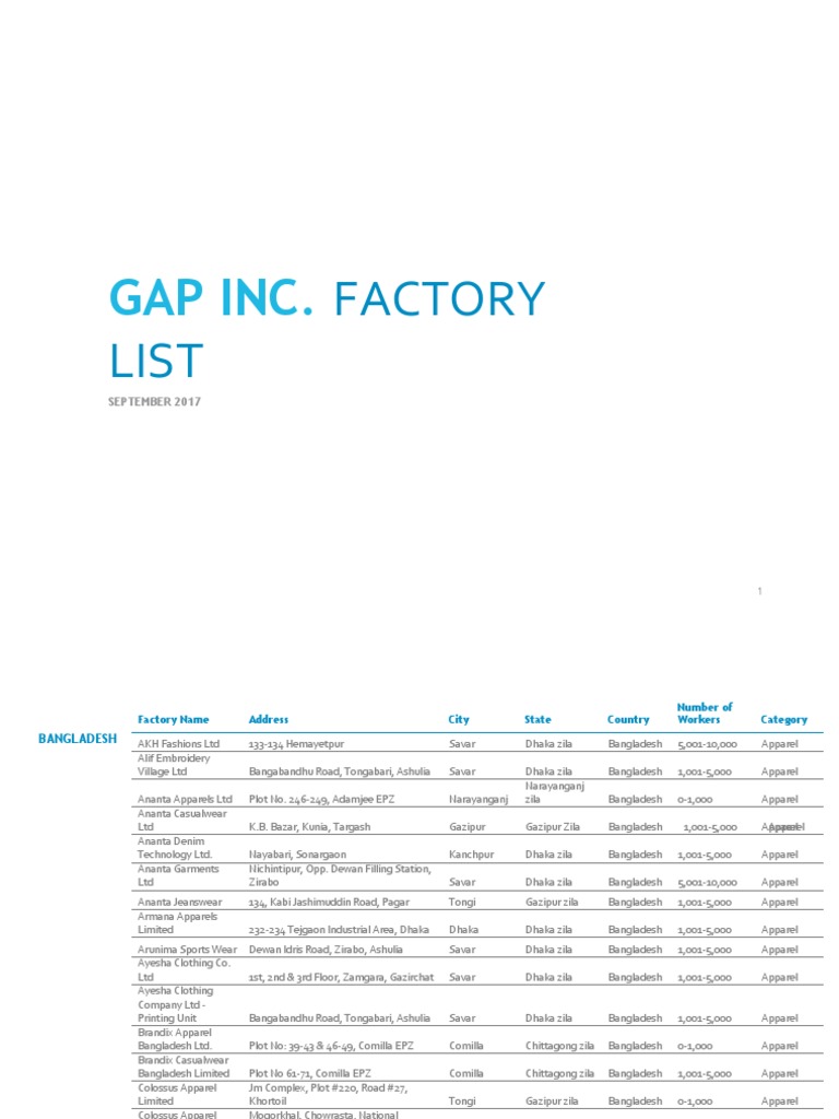 Gap Inc.: Factory List | Cambodia | Phnom Penh