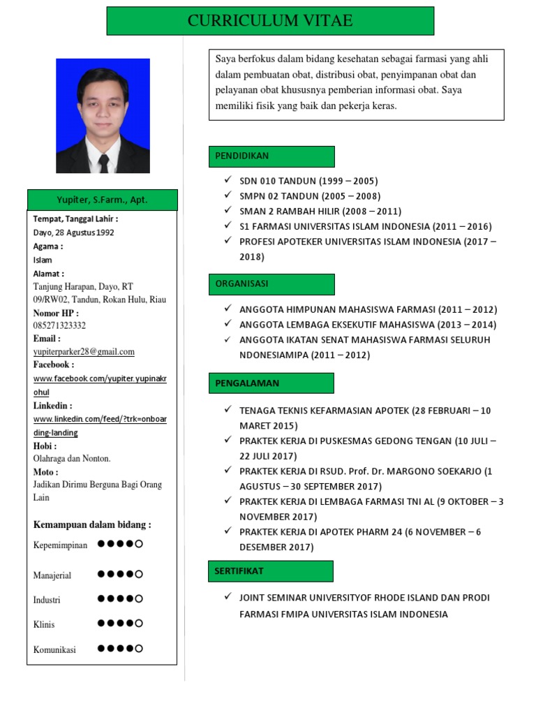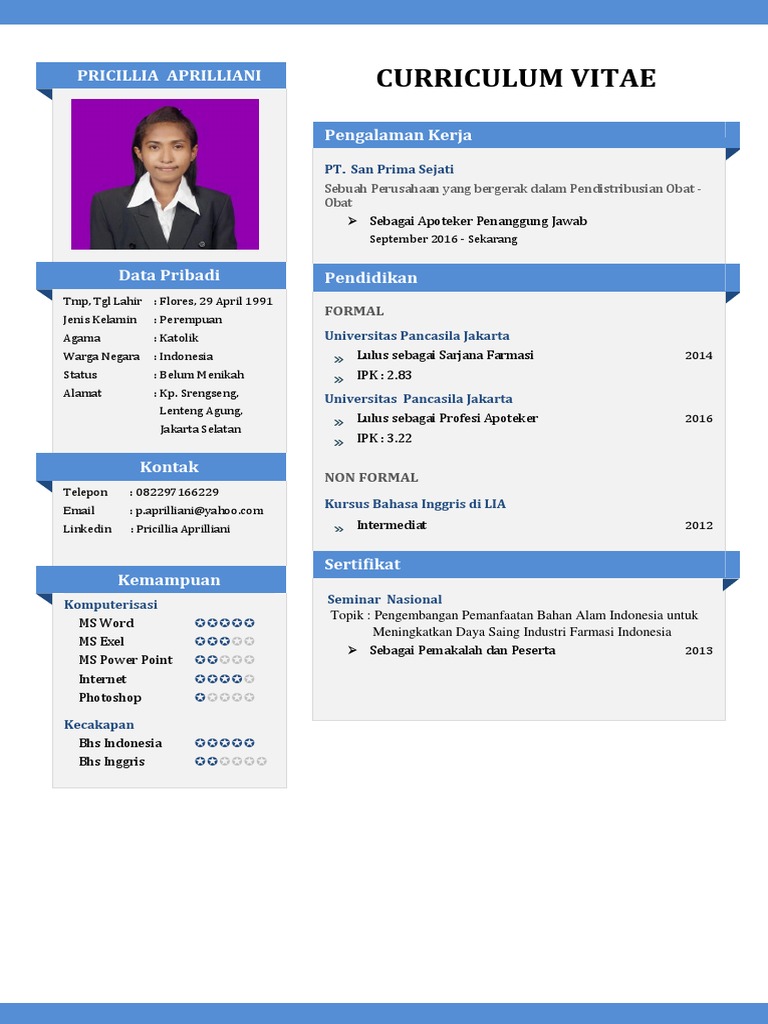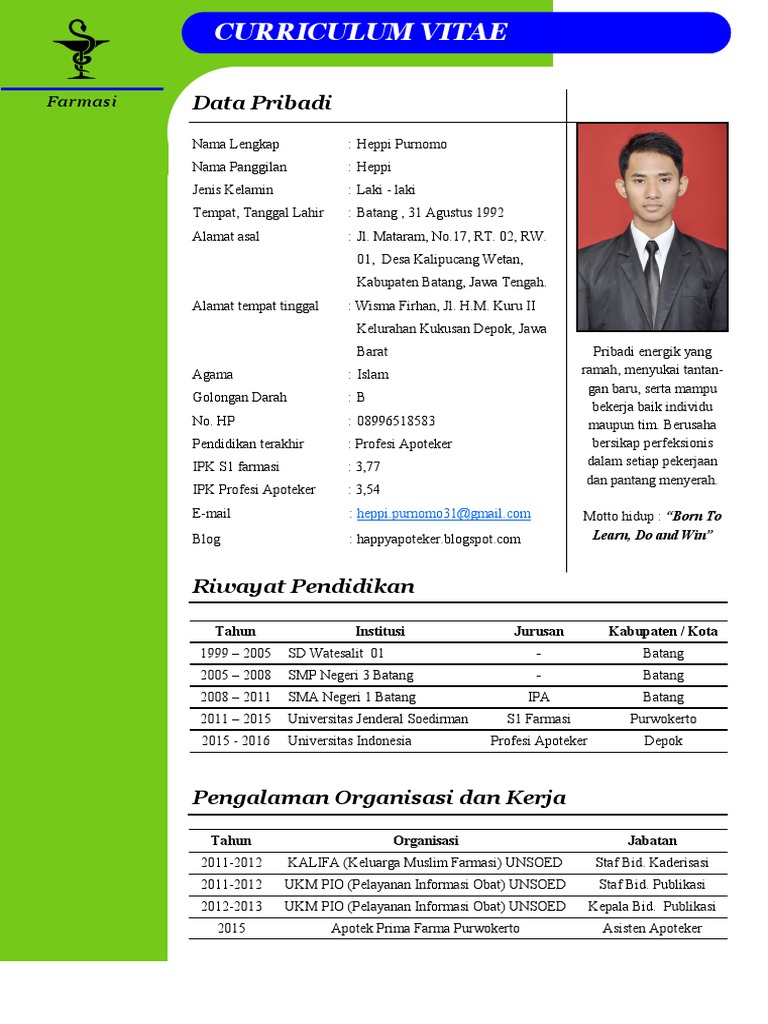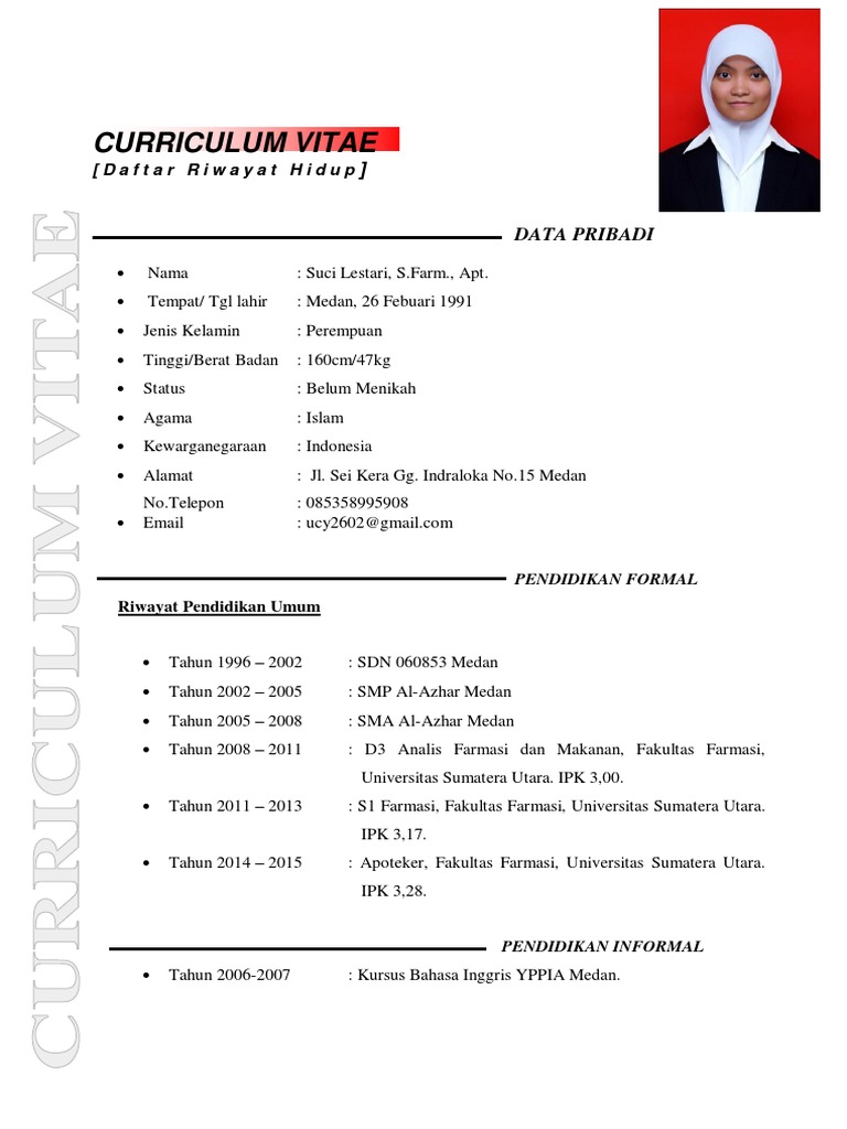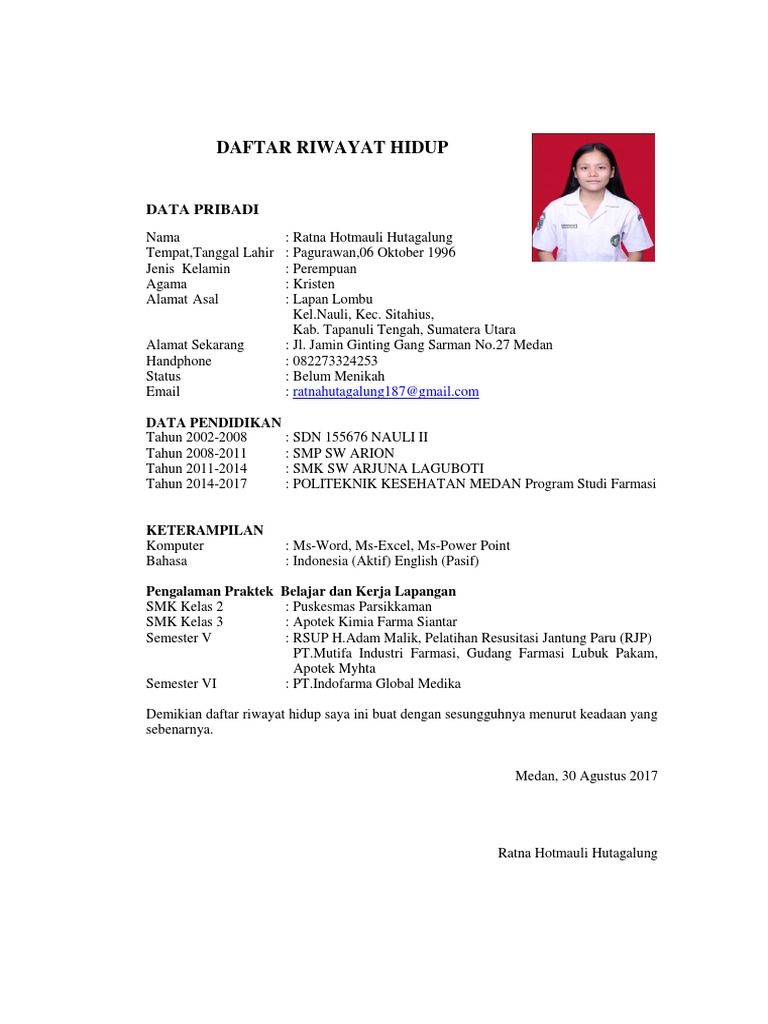 Contoh Daftar Riwayat Hidup Farmasi - Gawe CV