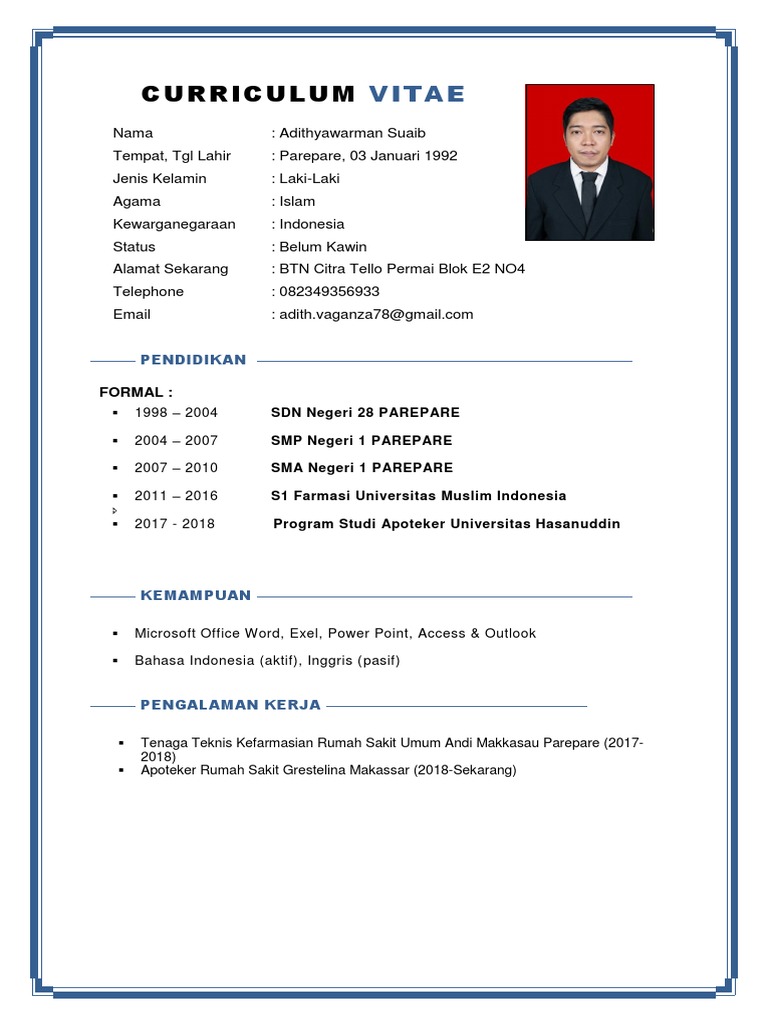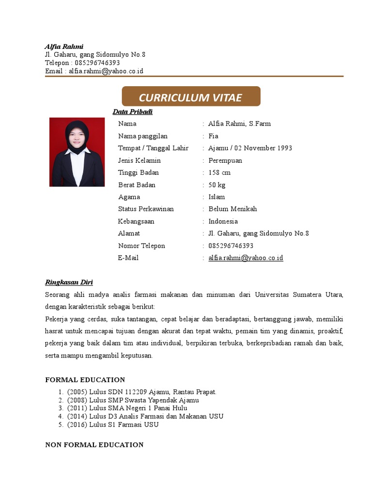 Wow Contoh Cv Fresh Graduate Farmasi 18 Untuk Format Curriculum Vitae Unik di post Contoh Cv Fresh Graduate Farmasi - Gawe CV