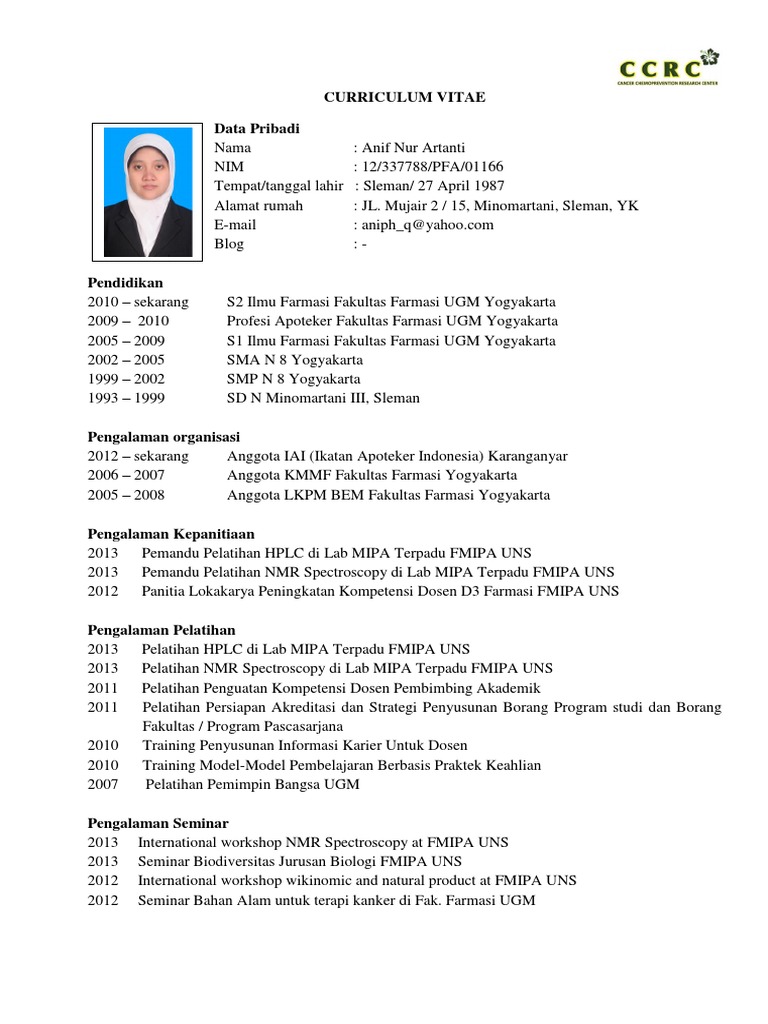 Contoh Cv Farmasi - Cbr1m