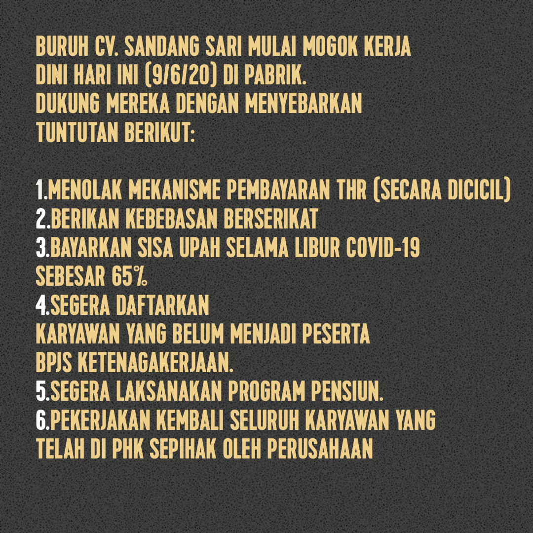 Diogenes Queen of Rap on Twitter: “Malam ini buruh CV. Sandang Sari sedang melakukan aksi mogok di pabrik, karena setelah menolak upah dibayar 35% dan THR dibayar cicil malah dituntut sebesar Rp.