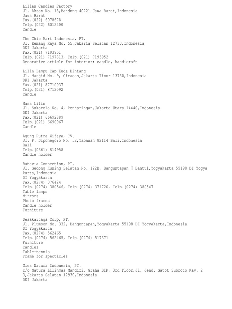 Daftar Perusahaan Lilin
