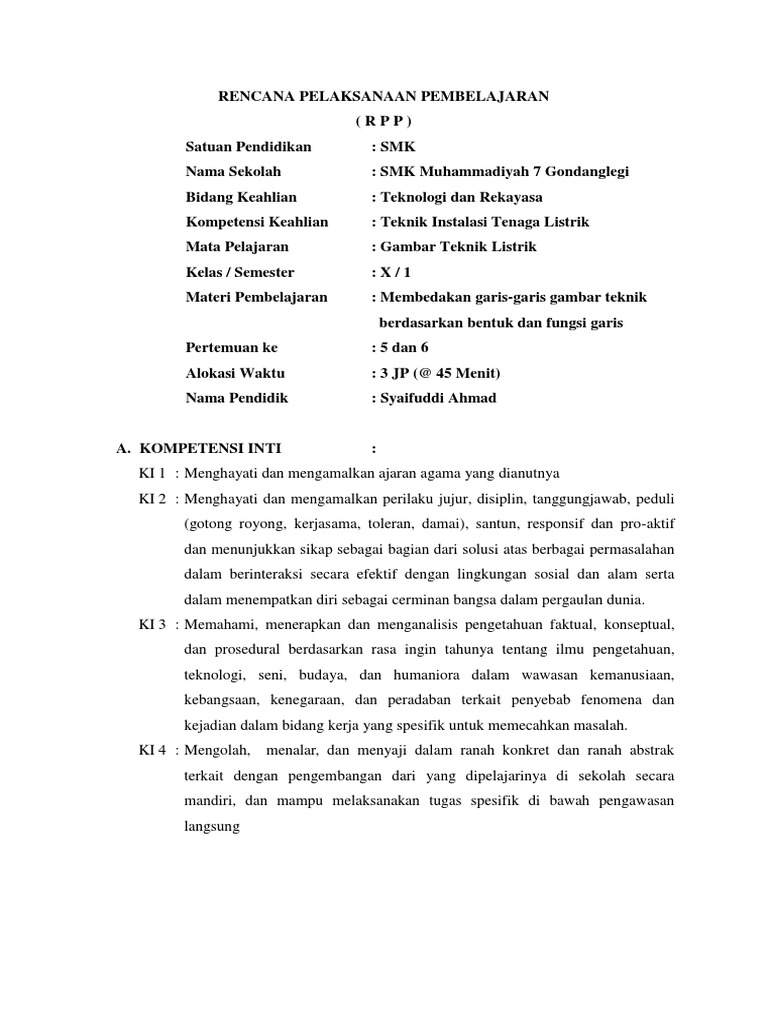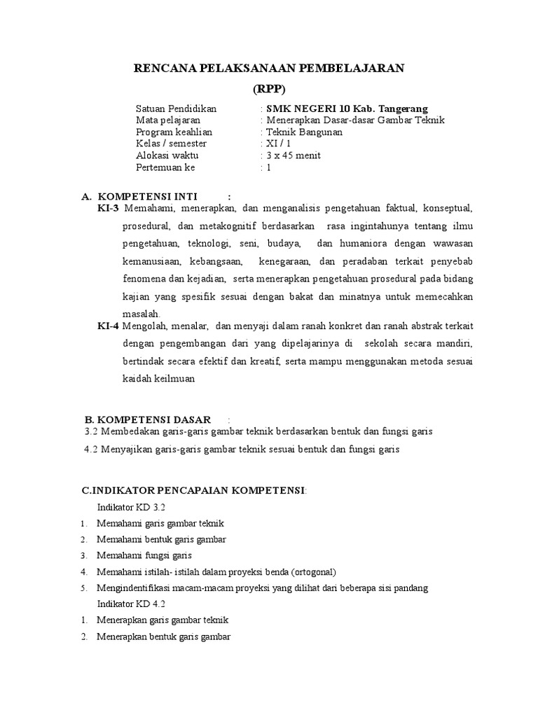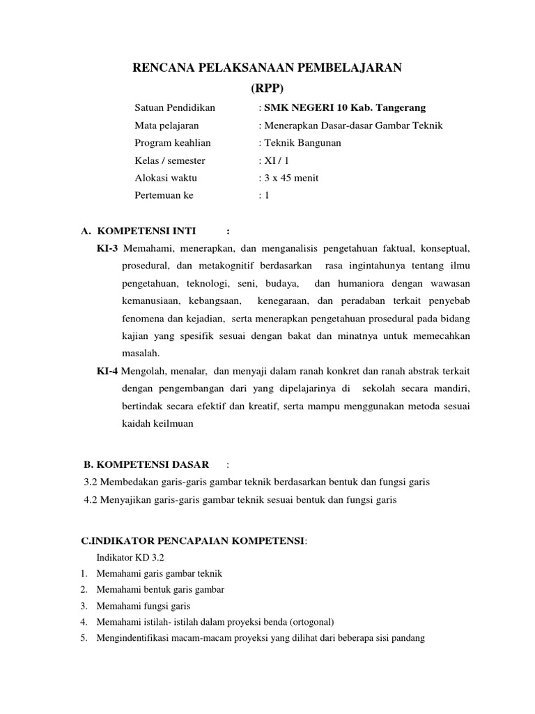 RPP KD. 3.3 Garis gambar teknik