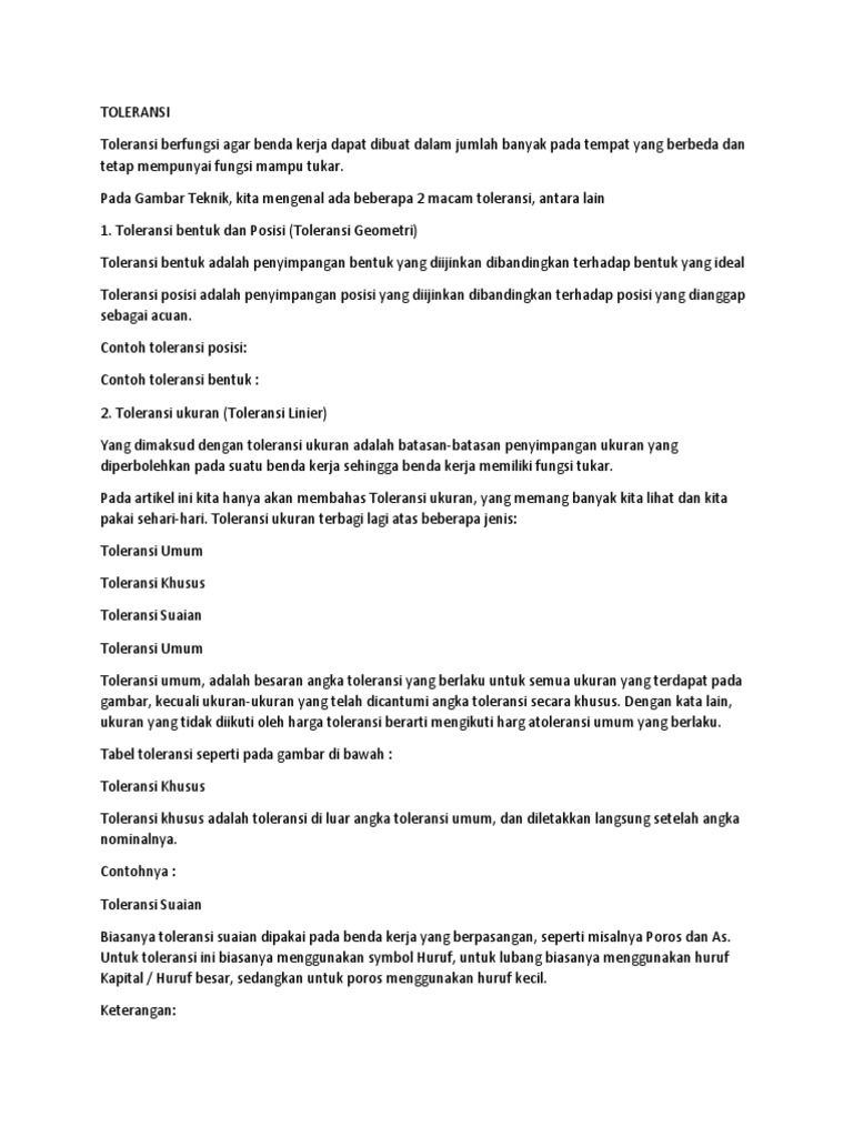 Fungsi Toleransi Gambar Teknik