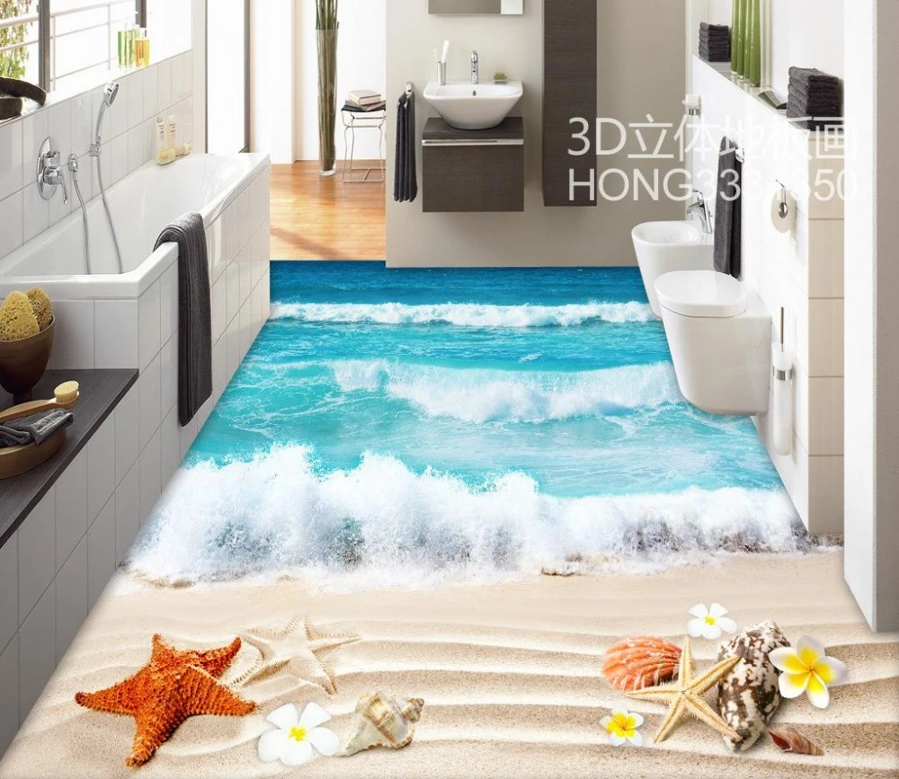 I Produk Impor Kustom 3D Lantai Lukisan Dinding Wallpaper Laut Gelombang Air Kamar Mandi 3D Lantai | Shopee Indonesia
