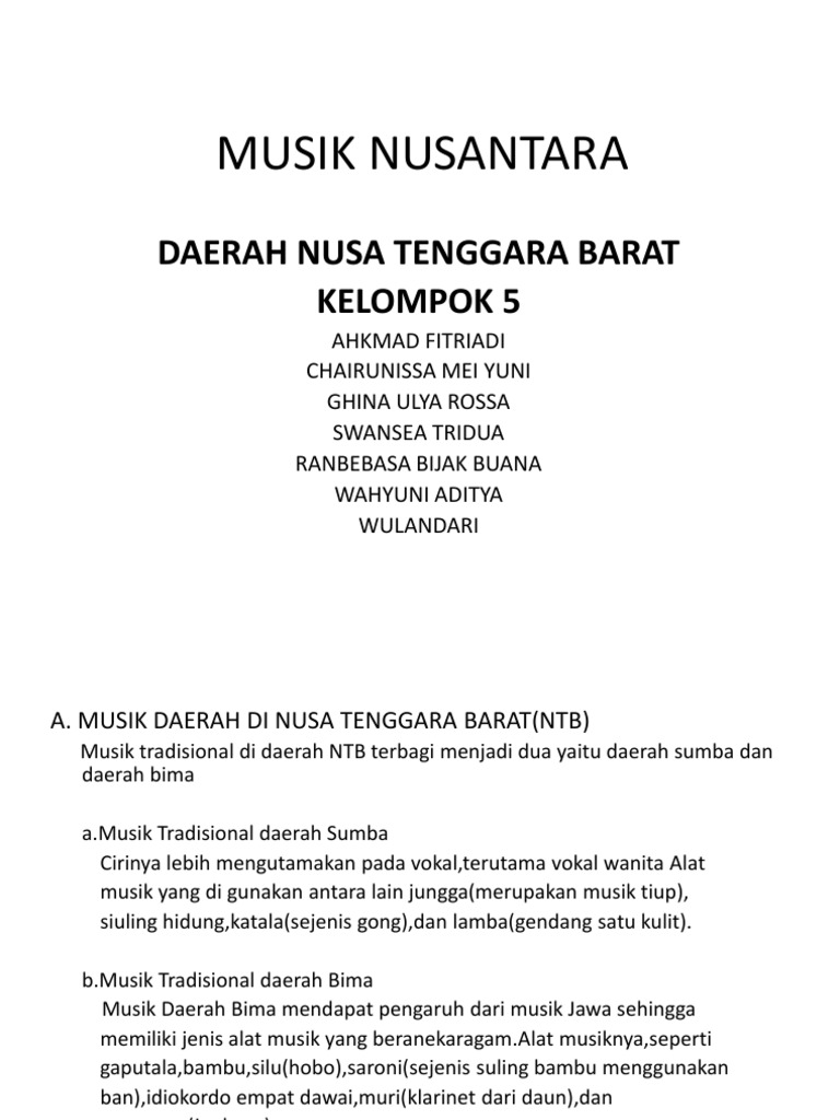 Musik Nusatara Daerah Nusa Tenggara Barat - ppt download