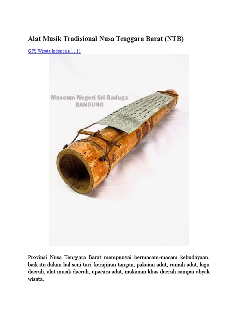 Alat Musik Tradisional Provinsi Nusa Tenggara Barat | DTECHNOINDO