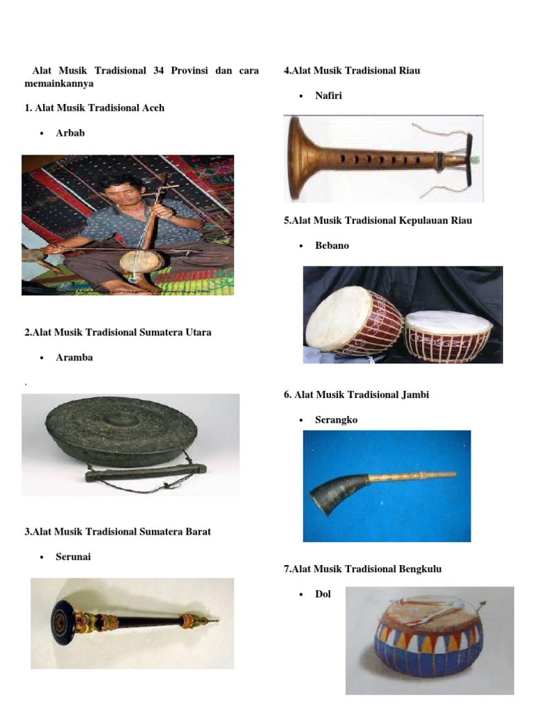 Alat Musik Tradisional 34 Provinsi Dan Cara Memainkannya..