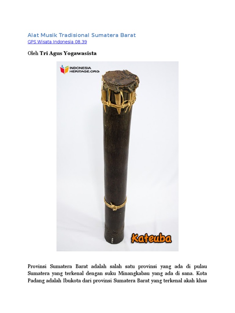 Alat Musik Tradisional Provinsi Sumatera Barat - Tentang Provinsi