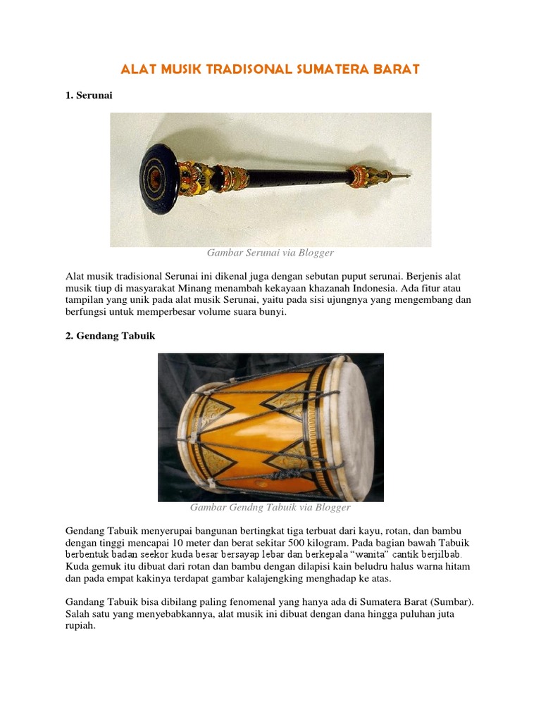 15 Alat Musik Sumatra Barat Lengkap dengan Gambar - Haipedia.com