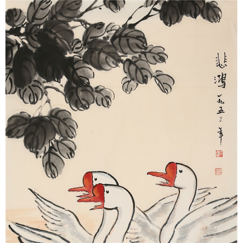 Lukisan Tangan Tiga Kaki Vertikal Gambar Angsa Nilai Xu Sad | Shopee Indonesia