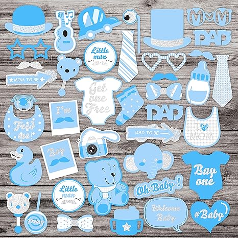 39Pcs Blue Glittering Baby Shower Photo Booth Props Baby Boy Shower Blue Theme Party Fvors Supplies Great for Lovely Baby, Baby Shower Party: Amazon.in: Toys & Games