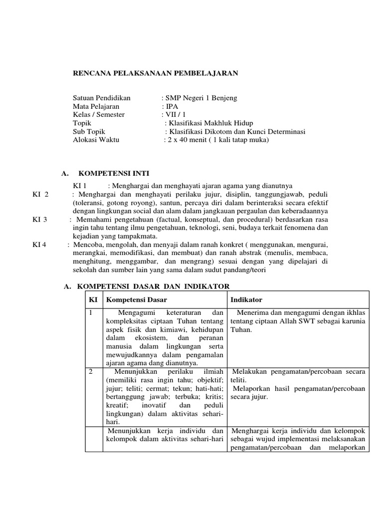 DOC) RPP KD.2. materi KLASIFIKASI MAKHLUK HIDUP | Rahayu Maysyarah - Academia.edu