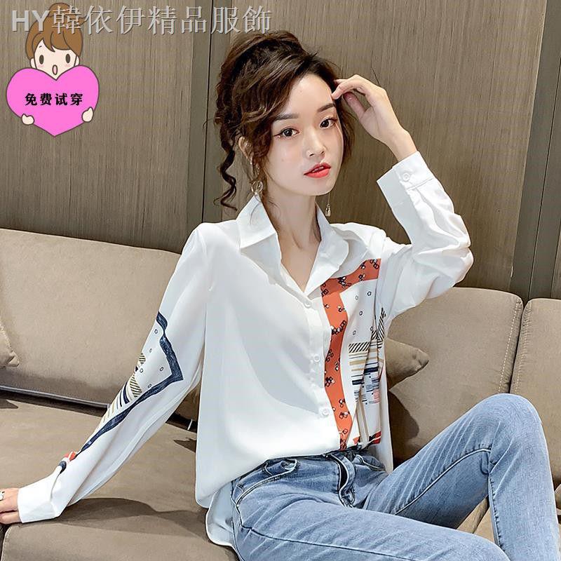 Kemeja Wanita Dengan Bahan Sifon Warna Putih Dan Gambar Motif Bergaya Fashionable Korea Untuk Musim Semi | Shopee Indonesia