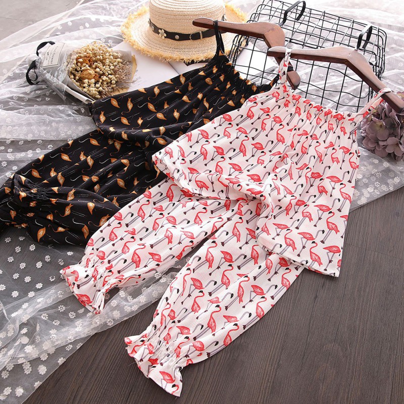 Set 2Pcs Baju Atasan Casual Bahan Sifon Gambar Flamingo dan Celana Motif Floral | Shopee Indonesia