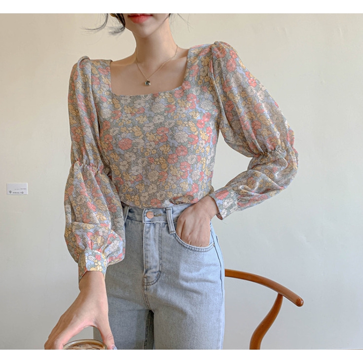 Fashion Wanita: Blus Sifon/Atasan sifon/Blus Lengan Panjang Bahan Sifon Print Bunga | Shopee Indonesia