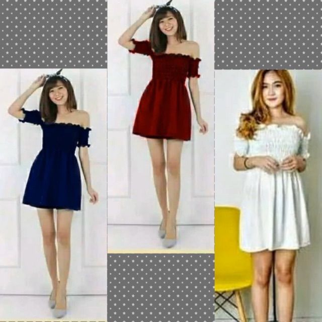 Mini Dress sabrina kerut babydoll lucu cute imut cantik wanita cewek women girl fashion baju pesta | Shopee Indonesia