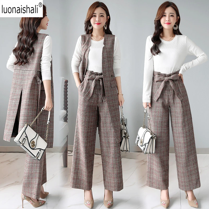 Fashion Kotak kotak Baju Wanita Versi Korea Baru dari Pinggang Temperamen British Perapi Celana Dua Set|Celana Sesuai dengan| - AliExpress
