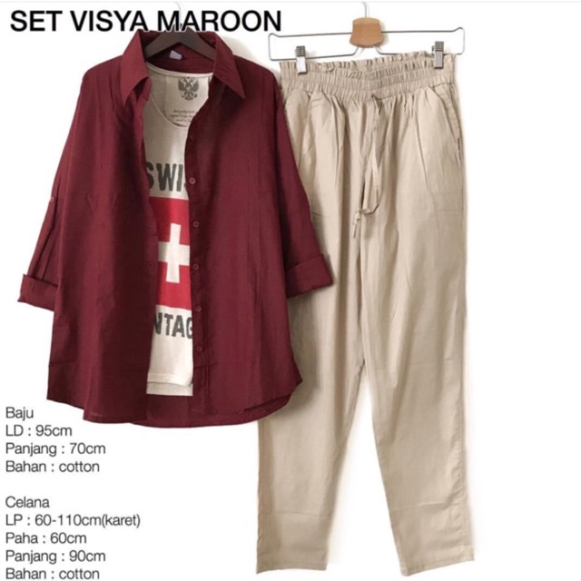 SET VISYA MAROON VINCSHOP VINC_id SET BAJU CELANA | Shopee Indonesia