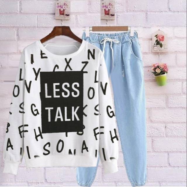 Pandora - Setelan Baju + Celana LESS TALK, Baju Babyterry, Celana Katun, Size L | Shopee Indonesia
