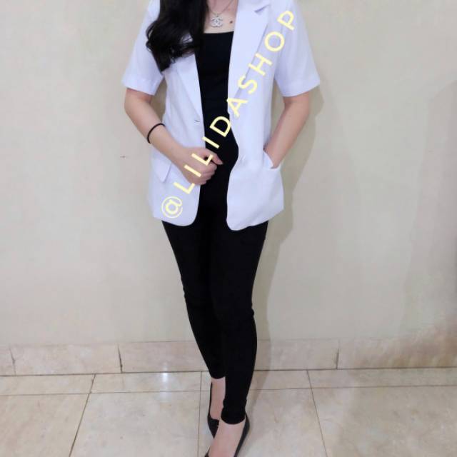 jas dokter snelli wanita lengan pendek merk DUA SAUDARA blazer dokter sneli | Shopee Indonesia