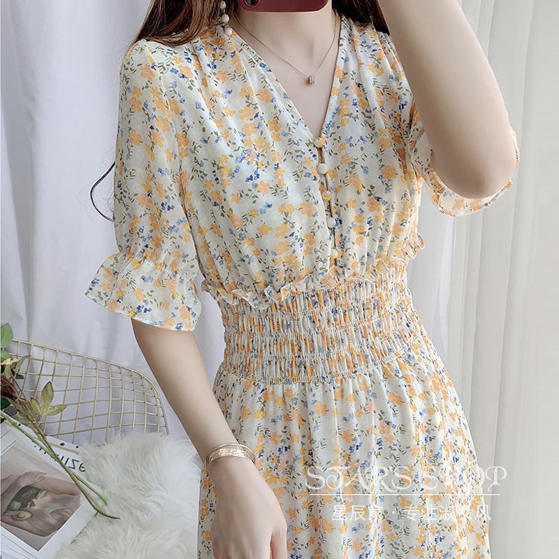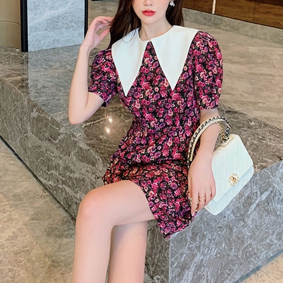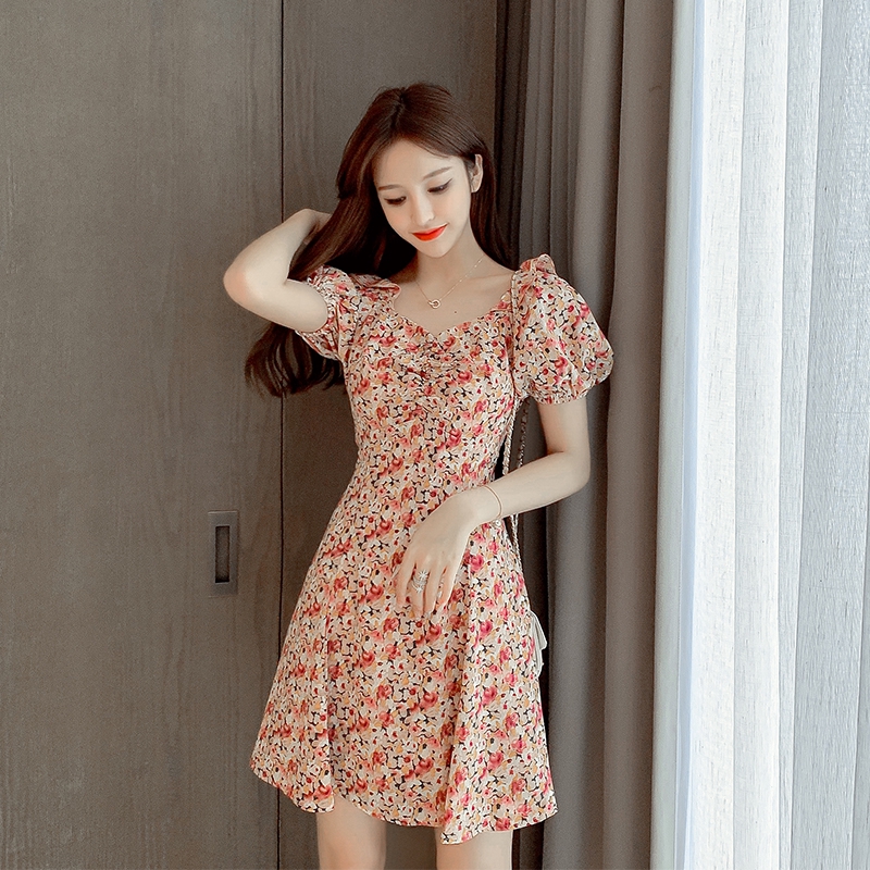 Gaun Wanita Dengan Model Lengan Pendek Dan Gambar Motif Floral Bergaya Chic Korea | Shopee Indonesia