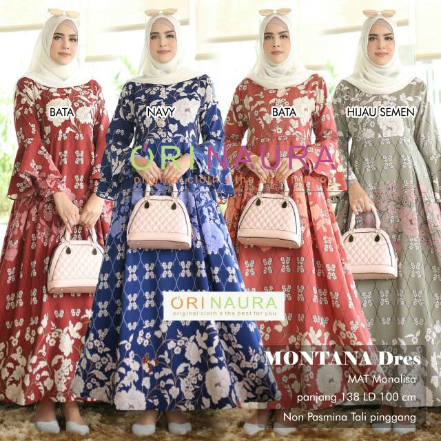 Baju muslim gamis dewasa lengan terompet ori by naura. Baju gamis motif bunga elegant | Shopee Indonesia