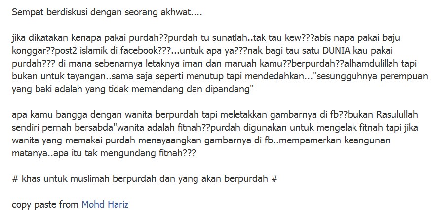 Lepak + Fikir: Etika Purdah Yang WAJIB Kita Maklum!