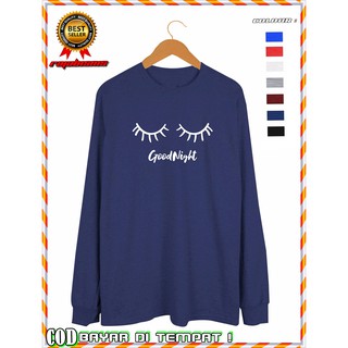KAOS LENGAN PANJANG COMBED 30S GOOD NIGHT / KAOS PANJANG PRIA WANITA / BAJU DISTRO GAMBAR GOOD NIGHT | Shopee Indonesia
