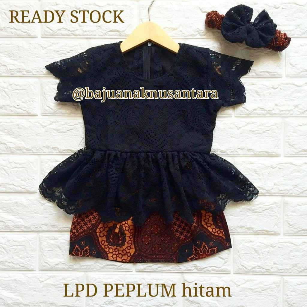 KEBAYA MODERN ANAK PEPLUM LENGAN PENDEK+ROK BATIK WARNA HITAM | Shopee Indonesia