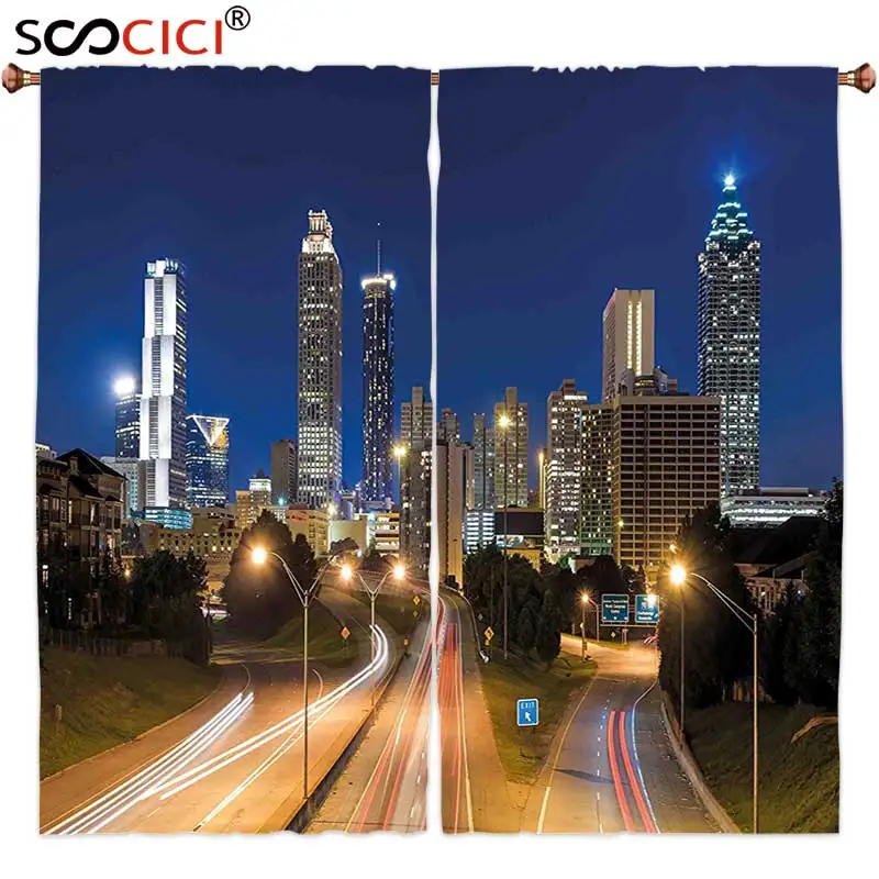 Tirai jendela Perawatan 2 Panel, Perkotaan Gambar dari Atlanta Skyline Twilight dengan Jalan Raya Bangunan Pencakar Langit Kabur Gerak|curtains window treatments|window treatment panelwindow treatments - AliExpress