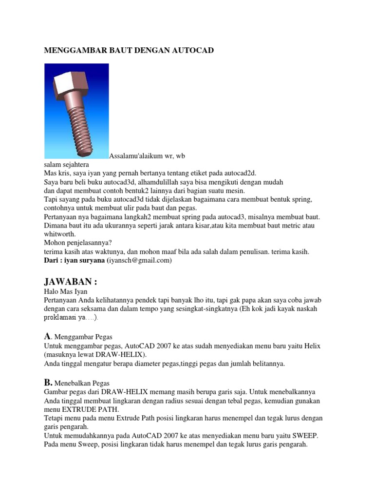 Menggambar Baut Dengan Autocad: Jawaban