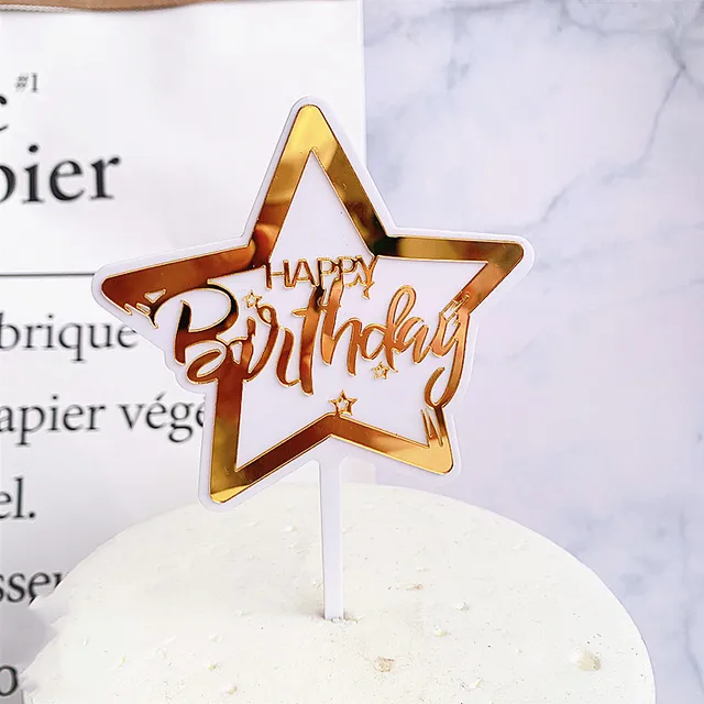 New Akrilik Kue Ulang Tahun dengan Gambar Bintang Emas Double Layer Topper Kue untuk Anak Pesta Ulang Tahun Dekorasi Kue Bendera|Perlengkapan Dekorasi Cake| - AliExpress