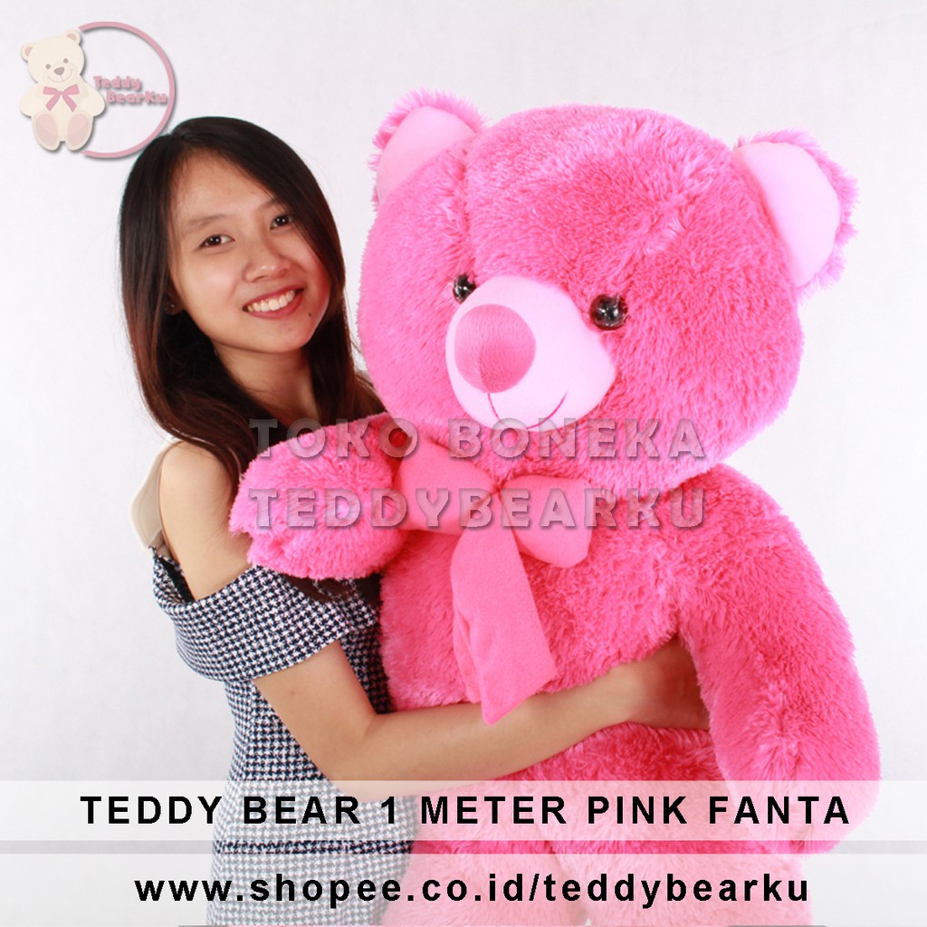 BONEKA TEDDY BEAR JUMBO UKURAN 1 METER WARNA PINK FANTA KHAS BANDUNG | Shopee Indonesia
