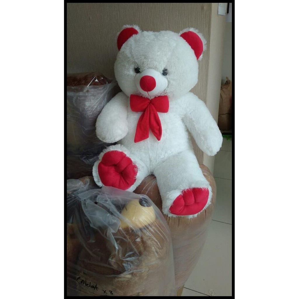 STOK BARU! - BONEKA TEDDY BEAR JUMBO 1 METER WARNA PUTIH MERAH KHAS BANDUNG — BONEKA LUCU | Shopee Indonesia