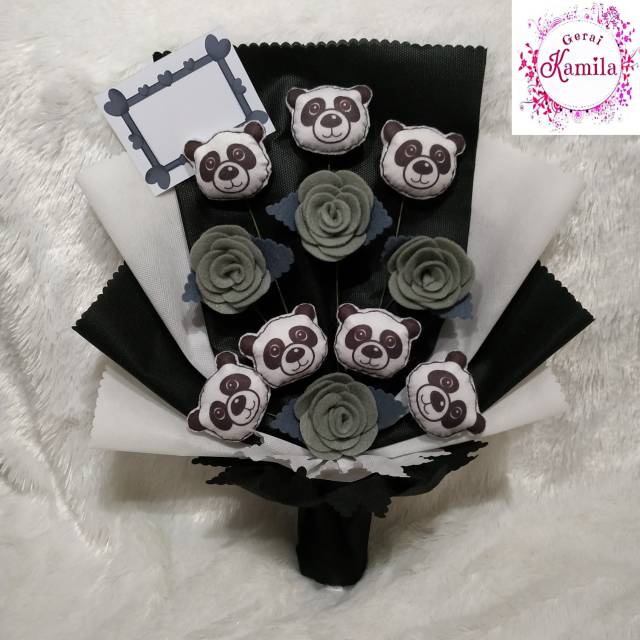 Boneka panda handbouqet bunga mawar flanel hadiah kado buat anak teman pacar cewek cowok | Shopee Indonesia