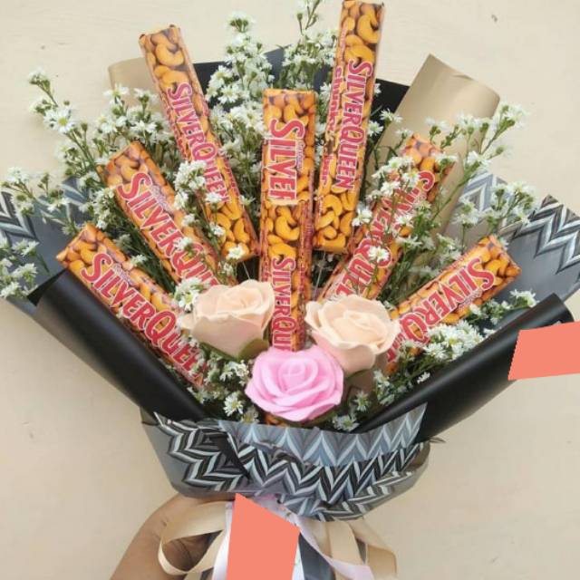 CUSTOM BUKET COKELAT SILVERQUEEN SNACK MAKANAN WISUDA ANNIVERSARY ULANG TAHUN TOKO BUNGA MEDAN | Shopee Indonesia