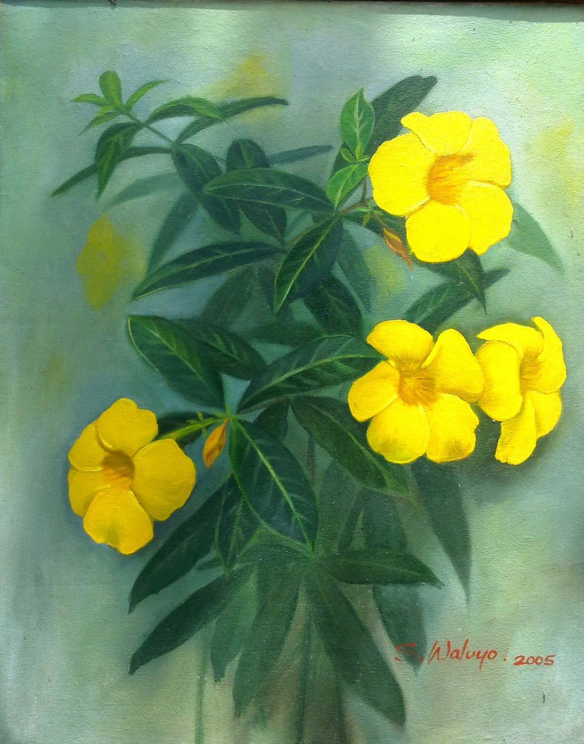 KRESENST ART PAINT STUDIO: Lukisan Bunga Alamanda oleh Antonius S. Waluyo