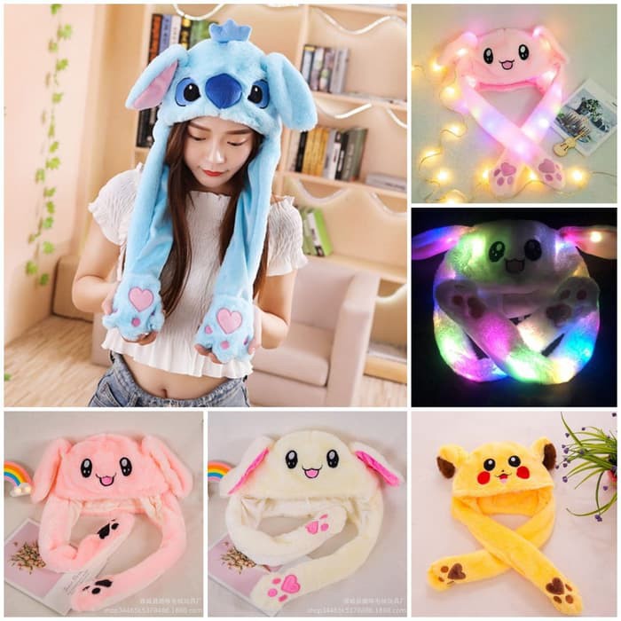 Bunny hat KPOP Berlampu LED Rabbit / Biru Stitch /Pikachu Hat Lucu Edisi Telinga Gerak Tiktok Topi | Shopee Indonesia