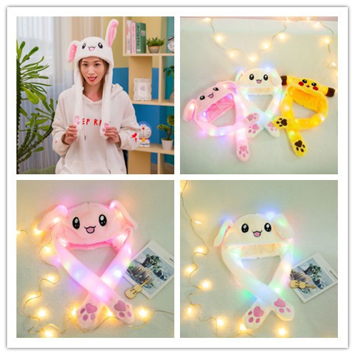 MDbunny hat Topi Kupluk Wanita Bahan Plush Desain Telinga Kelinci Kartun Lampu LED | Shopee Indonesia