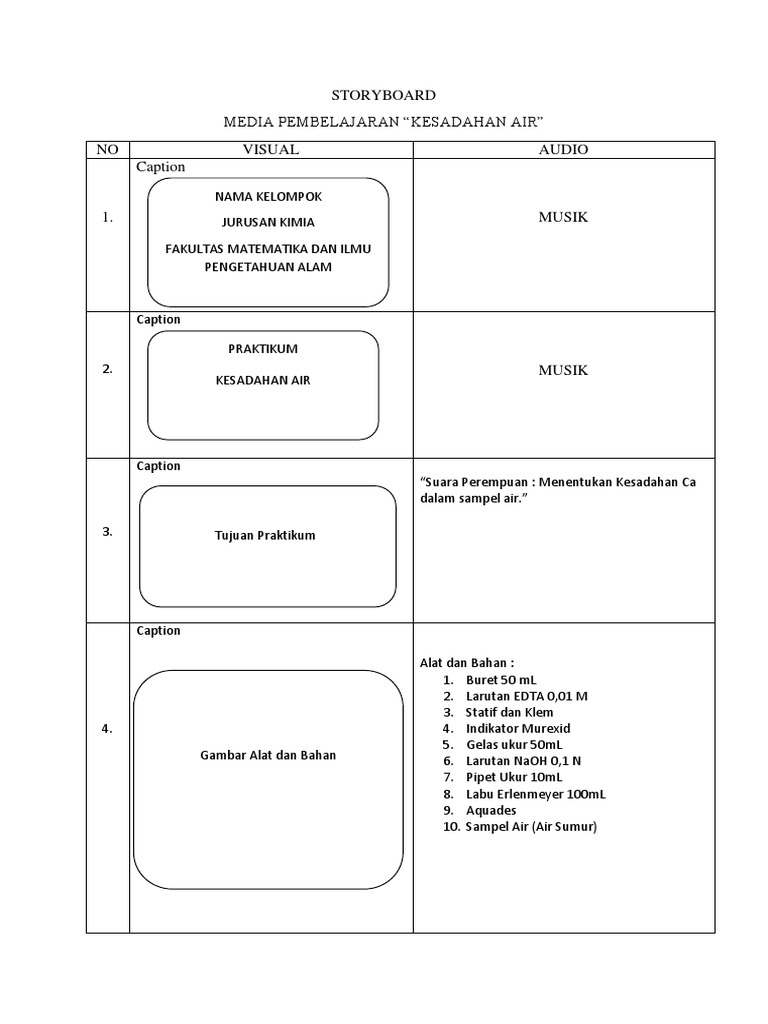 Storyboard Media Pembelajaran “Kesadahan Air” NO Visual Audio Caption