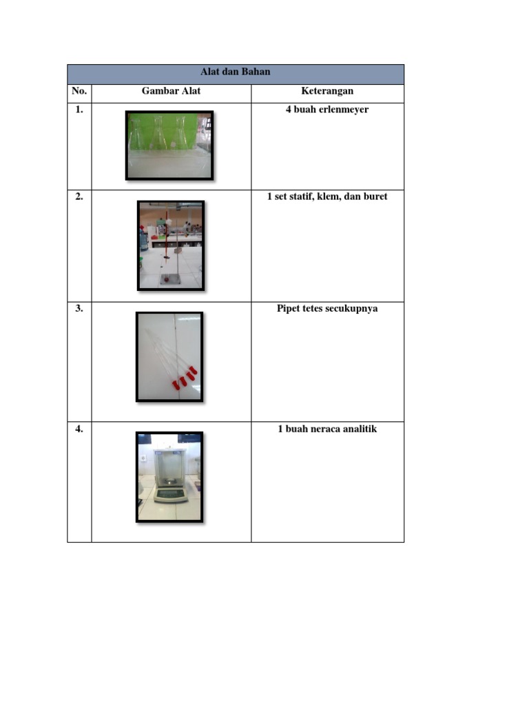 Nama Alat Fungsi Cara Kerja Alat Cara Membersihkan 1. Labu Ukur Untuk mengencerkan suatu larutan. - PDF Free Download