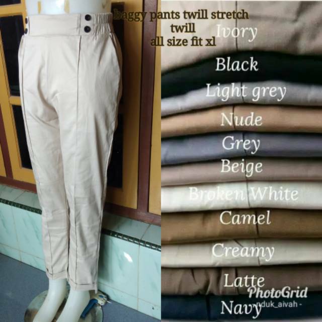 Baggi pant //baggy pants kancing twill stretch //celana kantor | Shopee Indonesia