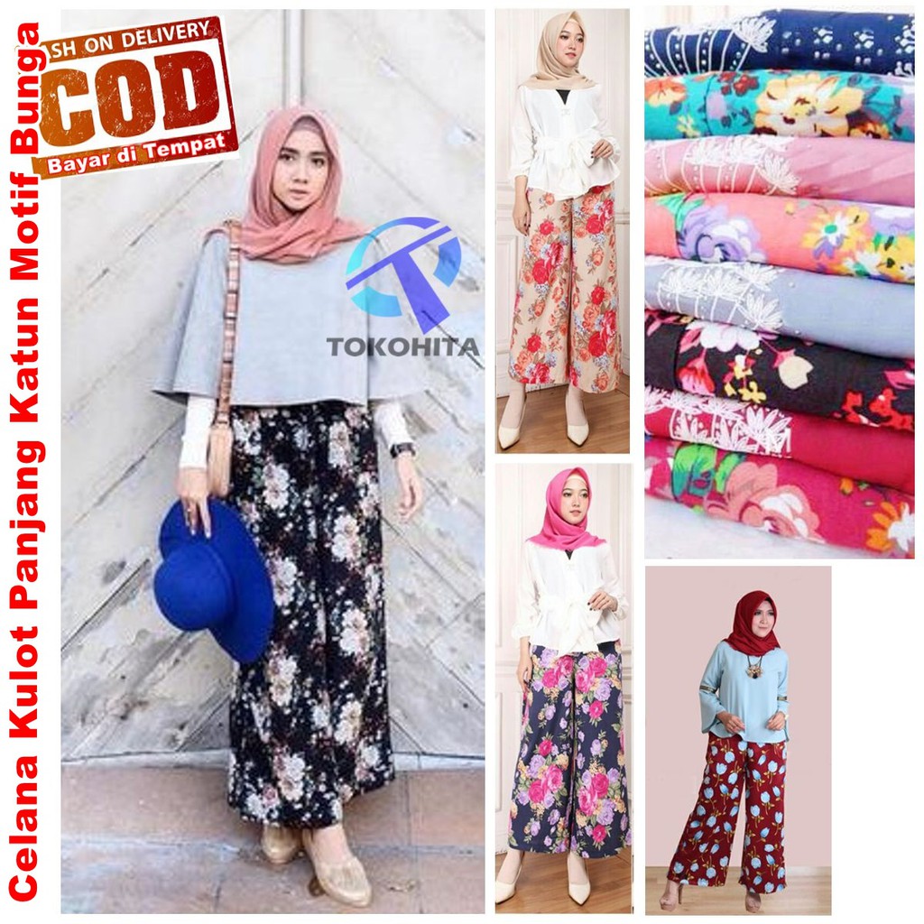 Celana Kulot Panjang Bahan Katun Motif Bunga Kembang | Shopee Indonesia